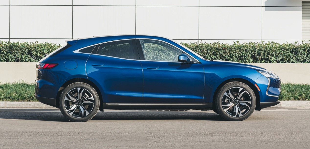 侧面车辆线条前后平衡,凸显了溜背式SUV的车身设计,后窗线上提的线条营造出紧凑的车尾线条。隐藏式感应门把手设计,在降低风阻的同时也带来了科技感。