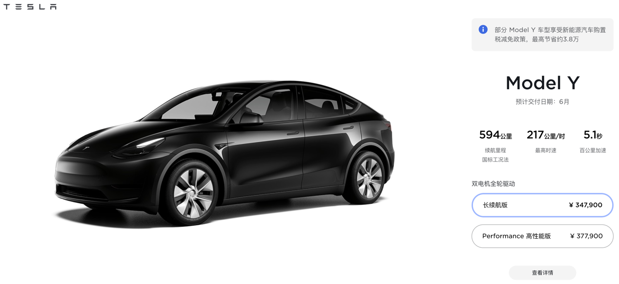 在不讨论价格的情况下,我们直接对比一下Model Y和赛力斯SF5的动力性能。特斯拉的动力系统比较简单,采用双电机全轮驱动,百公里加速5.1秒,官方续航数据为594公里,在动力和续航之间寻求到了一个平衡点,Model Y高性能版车型的续航480公里。